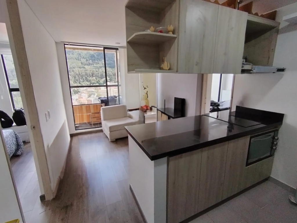 Apartamento amoblado en piso 24, exterior con magnifica vista de dos alcobas, un baño, sala comedor, cocina integral abierta, zona de lavandería independiente, balcón.