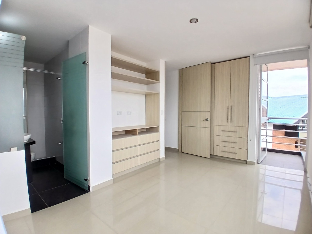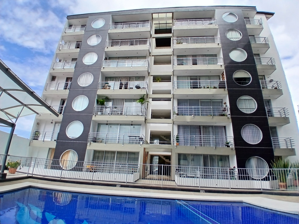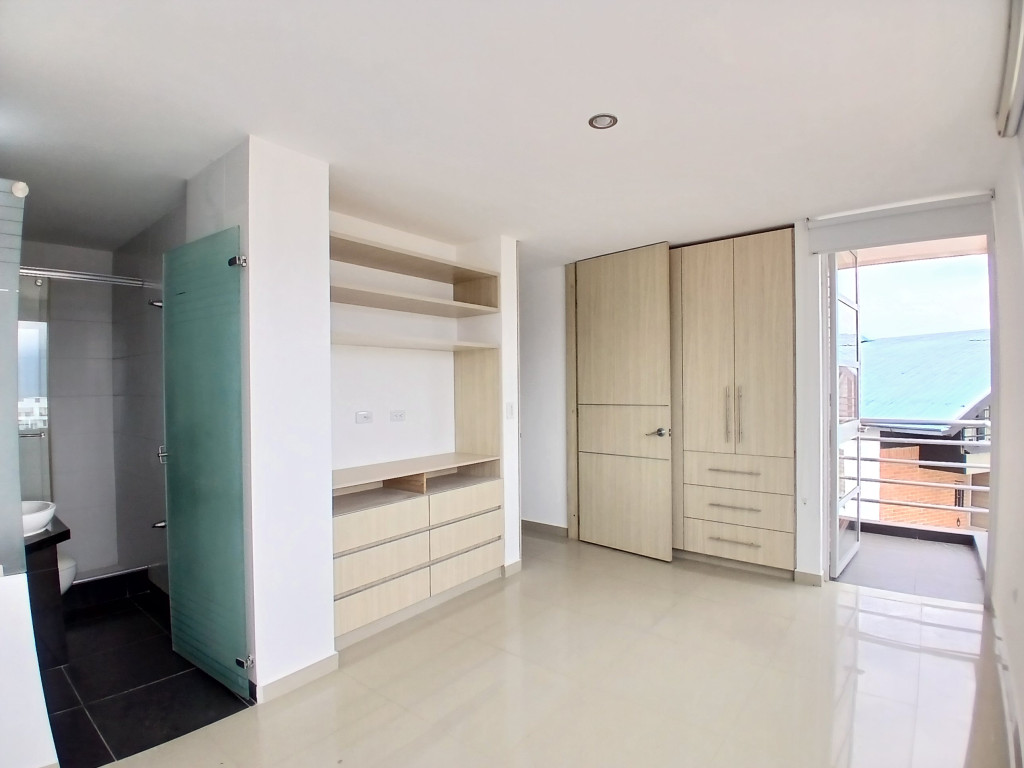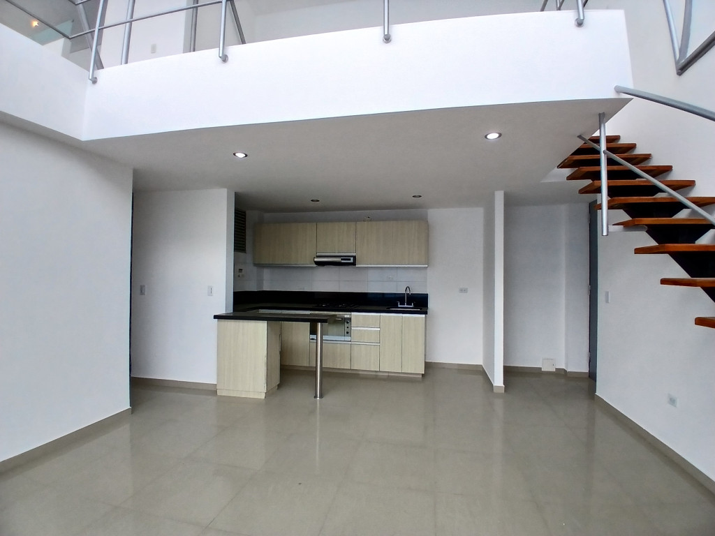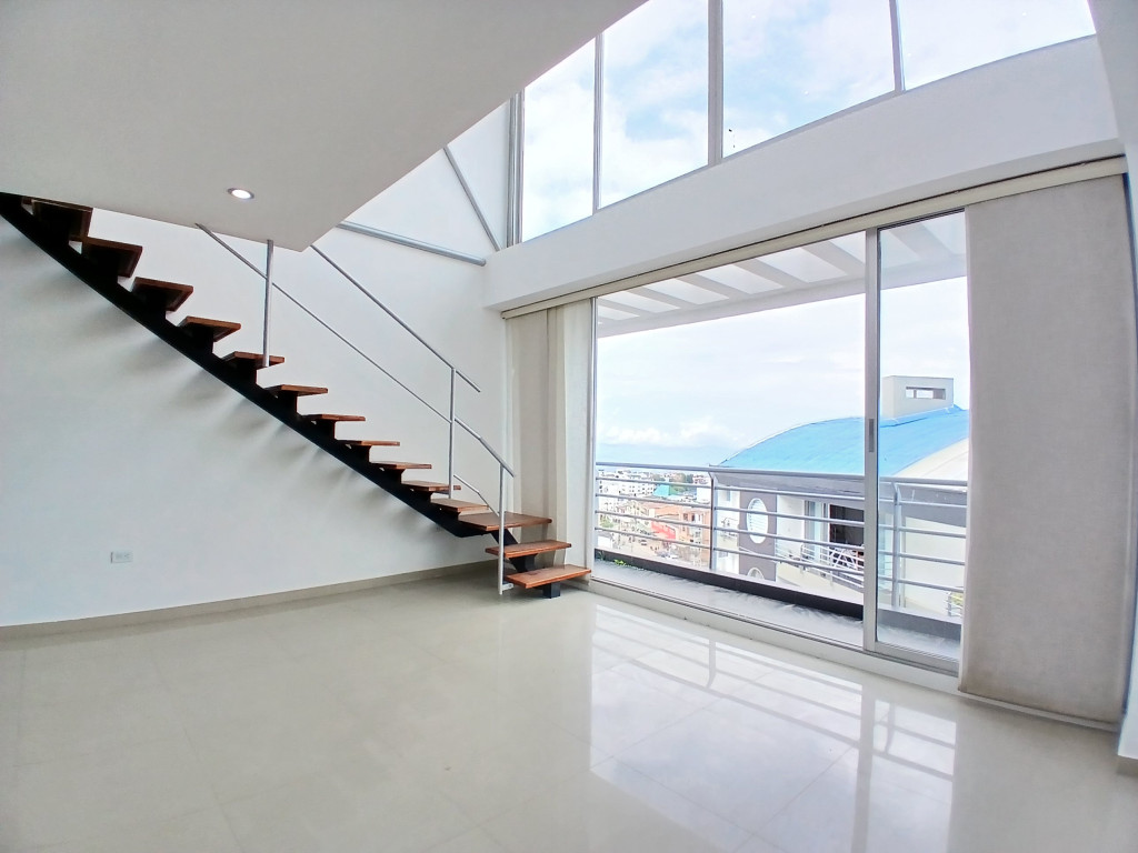 Apartamento exterior, iluminado, con mezanine de 60.7 metros adicionales, cuenta con tres habitaciones con closet, principal con baño privado y dos balcones, sala comedor con balcón, cocina integral abierta, zona de lavandería independiente, un baño adicional completo. En el mezanine encontramos espacio abierto con balcón, un baño completo, espacio para habitación de huésped. Un parqueadero.